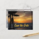 Announce your wedding plans with beautiful save the date sunset postcards. Both brides and grooms will like the design of tropical palm trees highlighted agains the ocean.