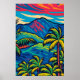 Vivid colours and playful energy make this piece a striking addition that brightens any room and compliments any decor. Cool wave blue, lush tropical greens, volcanic red and hot pink bring a bold Pop Art look to this beautiful landscape artwork.