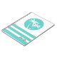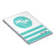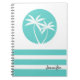 A simple relaxing tropical design with island vibes, a pair of palm trees sway against a cool aqua rounded background with coordinated stripes in the same colour. Personalise with your desired name, monogram or other text. This notebook is a nice choice for school, office or personal use.