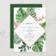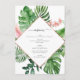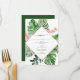 Tropical Green Palm Leaves and Blush Pink Flowers Watercolor with Faux Rose Gold Foil Geometric shape Spring or Summer Wedding Reception Menu - includes beautiful and elegant script typography with modern tropical botanical flowers and greenery for the special Wedding day celebration.