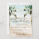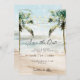A beautiful watercolour design of the beach with palm trees and white string lights save the date card, with a co-ordinating beachy reverse side. Easy to edit or delete the available text fields to personalize the information with your own details. Matching invitations and many other items in this tropical beach themed collection. Please visit my shop to see the full range or contact me if you need something with this design that is not currently listed.