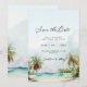 A beautiful watercolour design of the beach with palm trees and azure sea save the date card, with a co-ordinating beach reverse side. Easy to edit or delete the available text fields to personalize the information with your own details. Matching invitations and many other items in this tropical beach themed collection. Please visit my shop to see the full range or contact me if you need something with this design that is not currently listed.