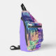 Palm trees in hot pink, purple, and turquoise create an abstract Hawaiian tropical pattern on the front of this sling bag with your name on the side. Create for yourself or give as a gift.