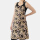 Tropical animal pattern of watercolor tiger stripes and golden palm fronds set on a pastel pink and purple background.