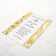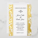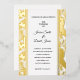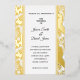 This wedding invitation is shown in a classic layout on a lovely gold foil tropical palms background.