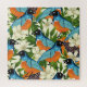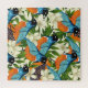 Papaya fruits, birds, and a tropical paradise in a pattern.