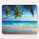 Perfect photo on a perfect day in the tropics! Blue tropical sea waves, white sandy tropical beach with lush green palm trees. The day is sunny and warm with a lite blue sky in this tropical island paradise beach scene.