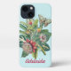 This is a colourful fantasy vintage tropical bouquet with a monogram name design.