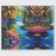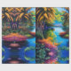 Tropical paradise palm trees and flowers by a reflecting body of water