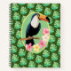 This delightful design has a tropical theme. The dark green background has a tropical leaf pattern accentuates the star of this design. This beautiful Toucan is perched on a branch and surrounded by colourful tropical flowers. The background colour can be changed to a colour of your choice. These versatile notebooks are available in three styles and come with a choice of six spiral colours. Take your personal design even further by choosing one of eight page design options including College Ruled, Graph and Recipe.