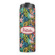 Tropical flowers and leaves in pink, blue, green, and many more colours combine to make a beautiful jungle print on this travel mug. Bold, bright, and beautiful, this thermal tumbler will become a favourite!