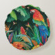 Tropical Parrot: Exotic Floral Background. Round Cushion