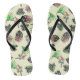 Colourful watercolor paintings of parrots and foliage in whimsical pattern on tropical flip flops (you can customise background colour)