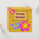 Custom Beach Bum party invitations with a pink hibiscus flower on a faux bamboo frame on a reed mat. Click Customise It to change fonts, colours, even save your design for later.