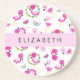 Tropical Pattern, Flamingos, Flowers, Your Name Coaster