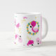 Tropical Pattern, Flamingos, Flowers, Your Name Large Coffee Mug