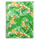 Watercolor tropical pattern with hummingbirds, leaves and oranges