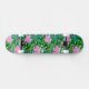 Vector seamless floral pattern with tropical decor: big pink flowers on background of palm leaves silhouettes, bushes, branches and jungle foliage © and ® Bigstock® - All Rights Reserved.