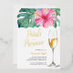 Celebrate your bridal shower with our exquisite "Petals and Prosecco" invitations, featuring elegant gold foil lettering and a top border of vibrant pink watercolor hibiscus flowers alongside a glass of champagne. The unique watercolor art and design by Victoria Grigaliunas adds a touch of sophistication and joy to your event. Perfect for a chic brunch bridal shower, these invitations can be easily personalised to include your custom text, ensuring a memorable and stylish celebration.