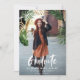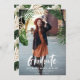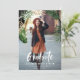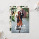 Painted tropical photo graduation announcement/invitation card. Hand painted script text.