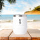 These elegant minimalist wine tumblers make great bridal party gifts or destination wedding favours for your summer or tropical wedding. Clean minimal design features your n names, wedding date, and location in classic black serif lettering. A pineapple illustration in black completes the design.
