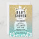 Tropical Pineapple Flower Gold Glitter Baby Shower Invitation
