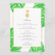 Tropical Pineapple menu cards, part of our tropical pineapple wedding stationery collection. Featuring bright green watercolor tropical leaves in the background with faux gold foil accents. Use the "customise" / "personalise" tool to adjust text size and placement!