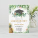 Celebrate your graduate with this fresh and vibrant tropical graduation party invitation. Lush watercolor jungle leaves and palm fronds frame a classic graduation cap, while a golden pineapple adds a fun, festive touch perfect for a summer celebration.