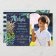 Tropical Pineapple Navy Blue Luau Birthday Photo Invitation