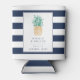 Commemorate your wedding in island preppy style with these wedding favour can coolers, featuring a green and golden yellow pineapple illustration with the couple's names, wedding date and location in navy blue. A navy and white striped background finishes this design, perfect for Hawaii, Newport, island or southern weddings where the pineapple reigns supreme!