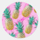 Tropical Pineapples & Pink Marble Chic Party Favou Classic Round Sticker