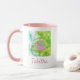 Gorgeous Florida colours on an abstract background with a flamingo and palms. Blue, green and salmon pink colours. Add your name to personalise.