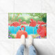 Original fine art design of tropical pink Caribbean flamingo birds by wildlife artist Carolyn McFann of Two Purring Cats Studio printed on a customisable, fade and mould/mildew resistant doormat.