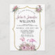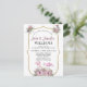 This tropical themed Wedding Vowel Renewal invitation postcard is fresh, pink, and unique. The design features pink flamingos with pretty pink flowers, a parrot, and a toucan adorning a gold frame. Personalise this tropical wedding invite with all your info.