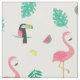 Tropical pink flamingo toucan watermelon leaves fabric