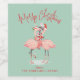 Tropical Pink Flamingo With Santa Hats Christmas Wine Label