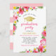 Tropical Pink Gold Hibiscus Flowers Graduation Invitation