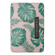 Tropical Pink & Green Palm Leaves Pattern & Name Bath Mat