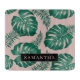 Tropical Pink & Green Palm Leaves Pattern & Name Cutting Board