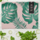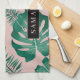 Tropical Pink & Green Palm Leaves Pattern & Name Tea Towel