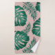 Tropical Pink & Green Palm Leaves Seamless Pattern Bath Towel Set