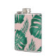 Tropical Pink & Green Palm Leaves Seamless Pattern Hip Flask