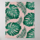 Tropical Pink & Green Palm Leaves Seamless Pattern Poster