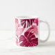 Tropical Pink Hibiscus and Monstera Leaves Pattern Coffee Mug