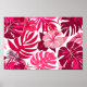 Tropical Pink Hibiscus and Monstera Leaves Pattern Poster