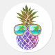 Meet our adorable purple pineapple, rocking a pair of cool sunglasses with a beachy twist! In the reflection of the shades, you'll find a serene beach scene complete with sparkling water and a swaying palm tree. The pineapple's unique purple hue mirrors the shimmering surface of the ocean, making this design a perfect blend of tropical vibes and playful charm. Ideal for those who love a splash of colour and a touch of whimsy, this cute pineapple is sure to brighten up t-shirts, mugs, bags, and more!