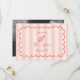 Hand drawn scalloped border with text and line art seashell illustration over pink stripe background. Personalise the photo on back.