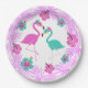 Tropical Pink Turquoise Palms Flamingo 9" Paper Plate