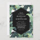 Glamourous banana leaves adorn this modern wedding invitation. A chic geometric element and lush tropical foliage lends itself to a truly stylish affair. Enter our shop for coordinating items: