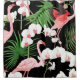 Seamless pattern, background with tropical plants, flowers and birds. Coloured Vintage illustration. Isolated on black background.